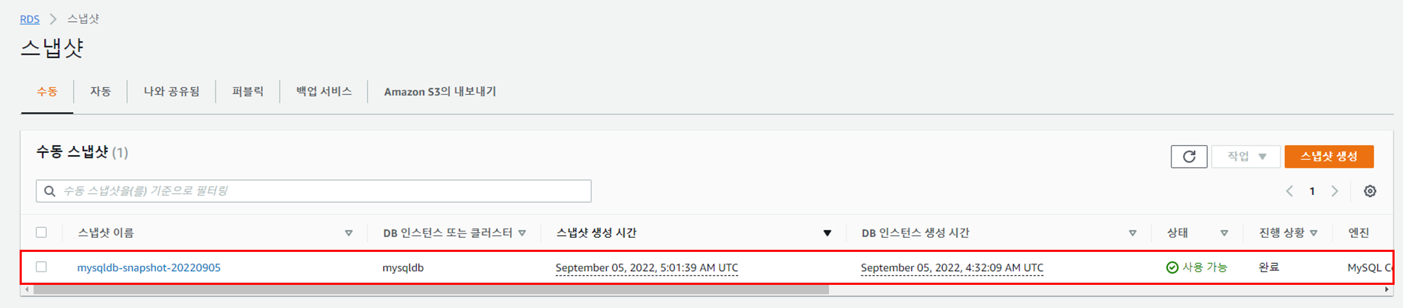 스냅샷 생성 여부를 확인한다.